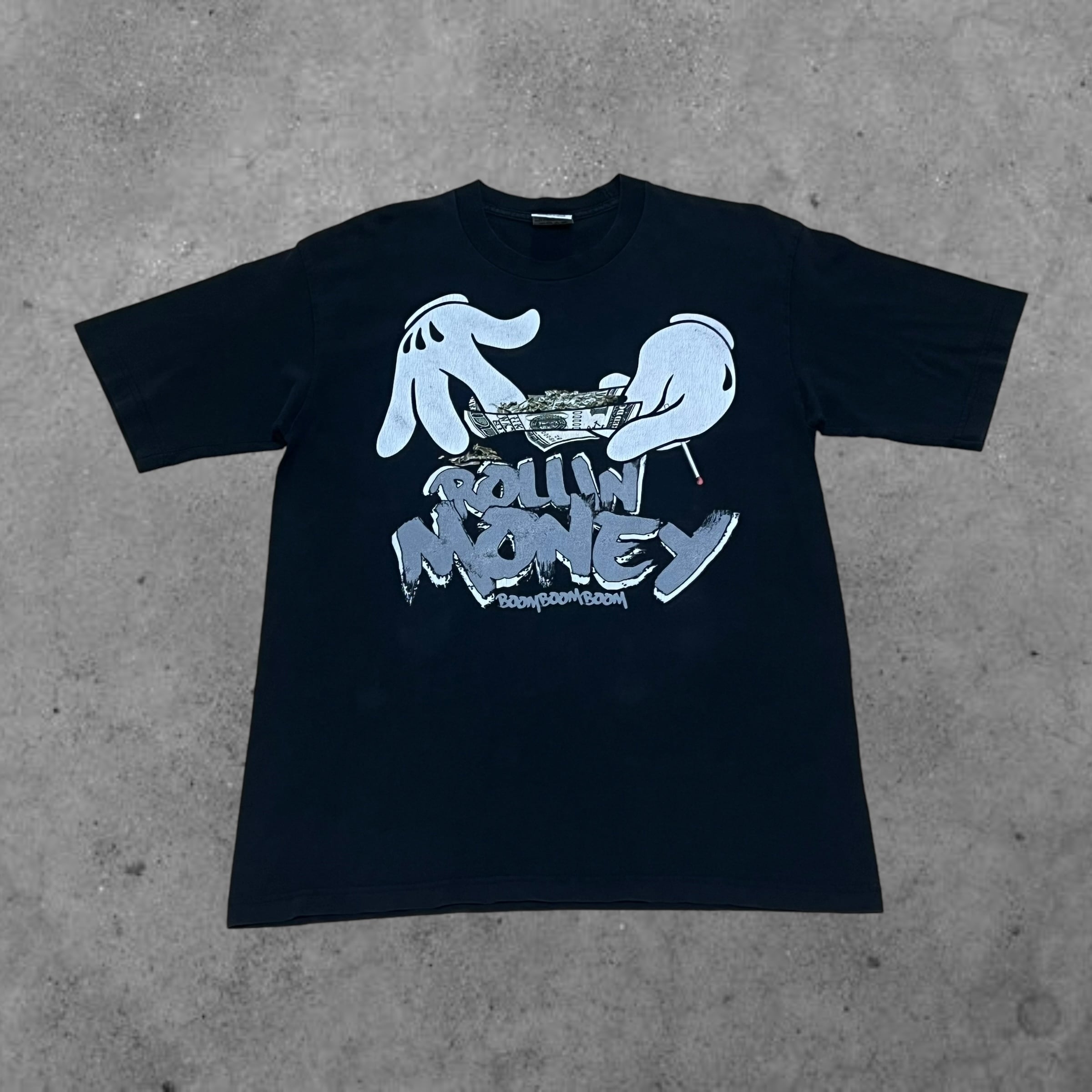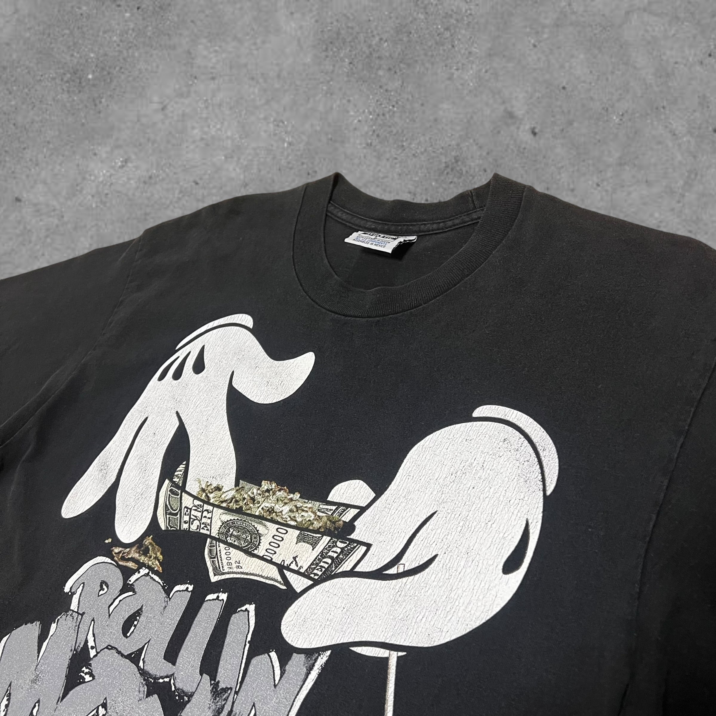90's〜00's bootleg Mickey Mouse marijuana rollin money print t-shirt ブートミッキーマウス マリファナローリンマネー プリントTシャツ | our style vintage clothing shop