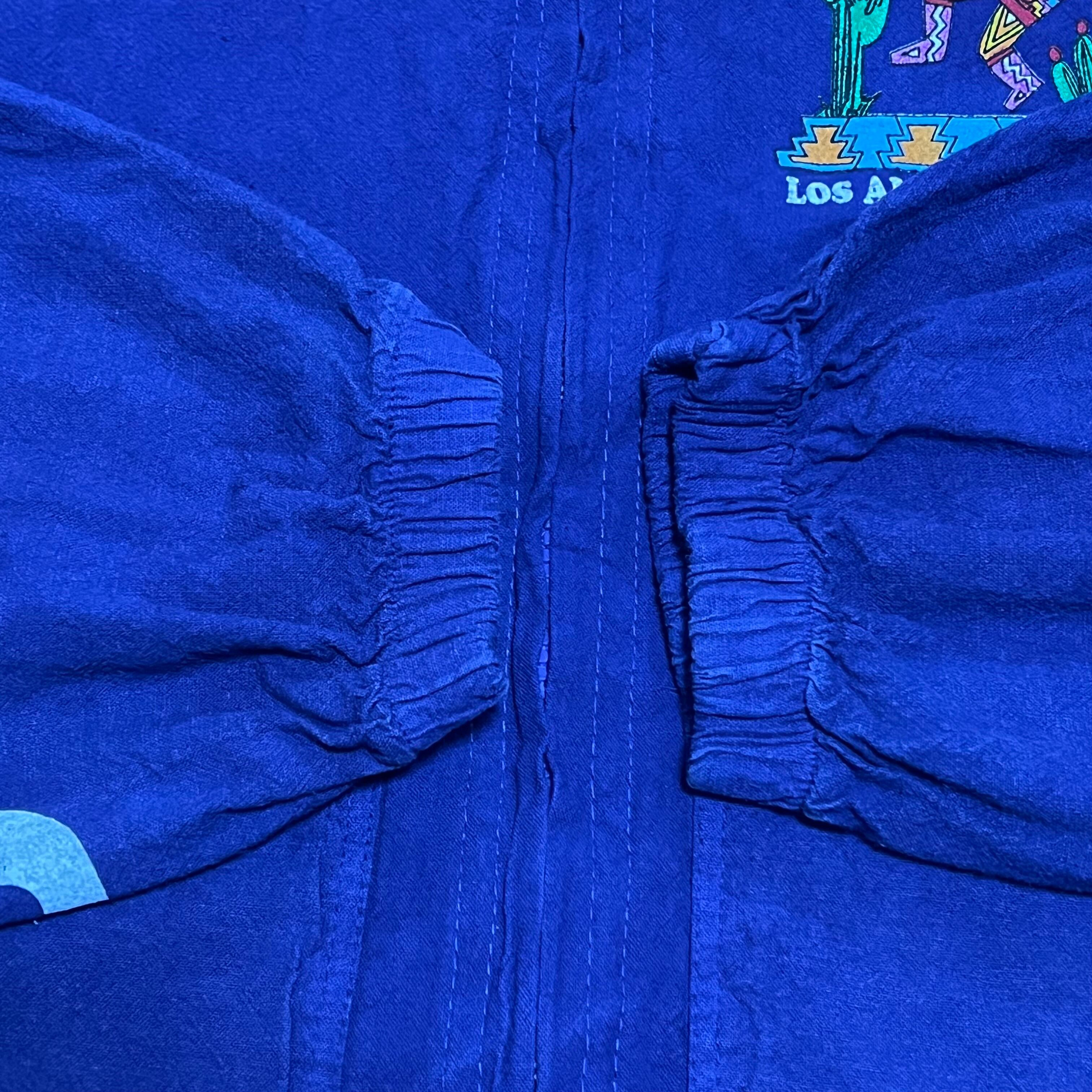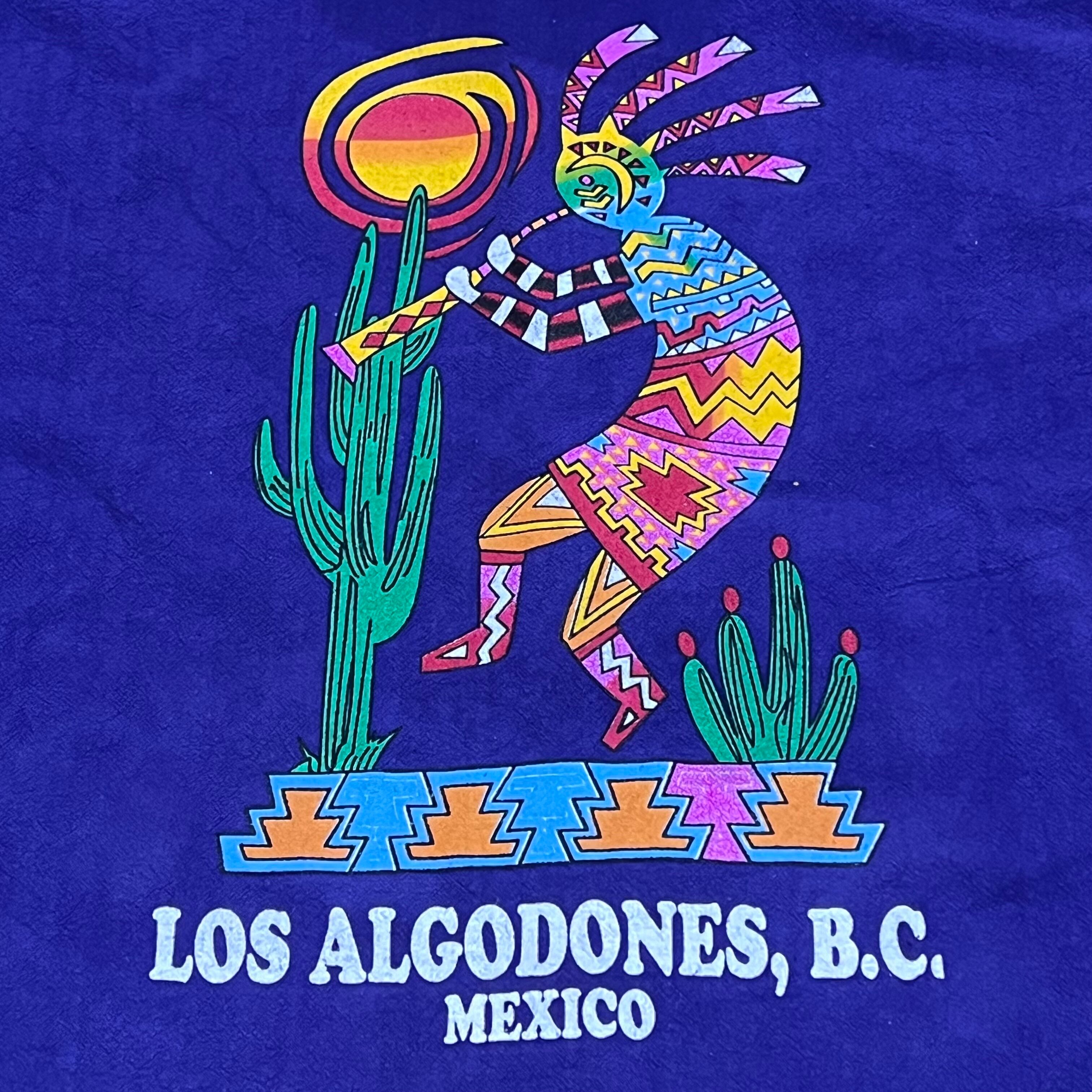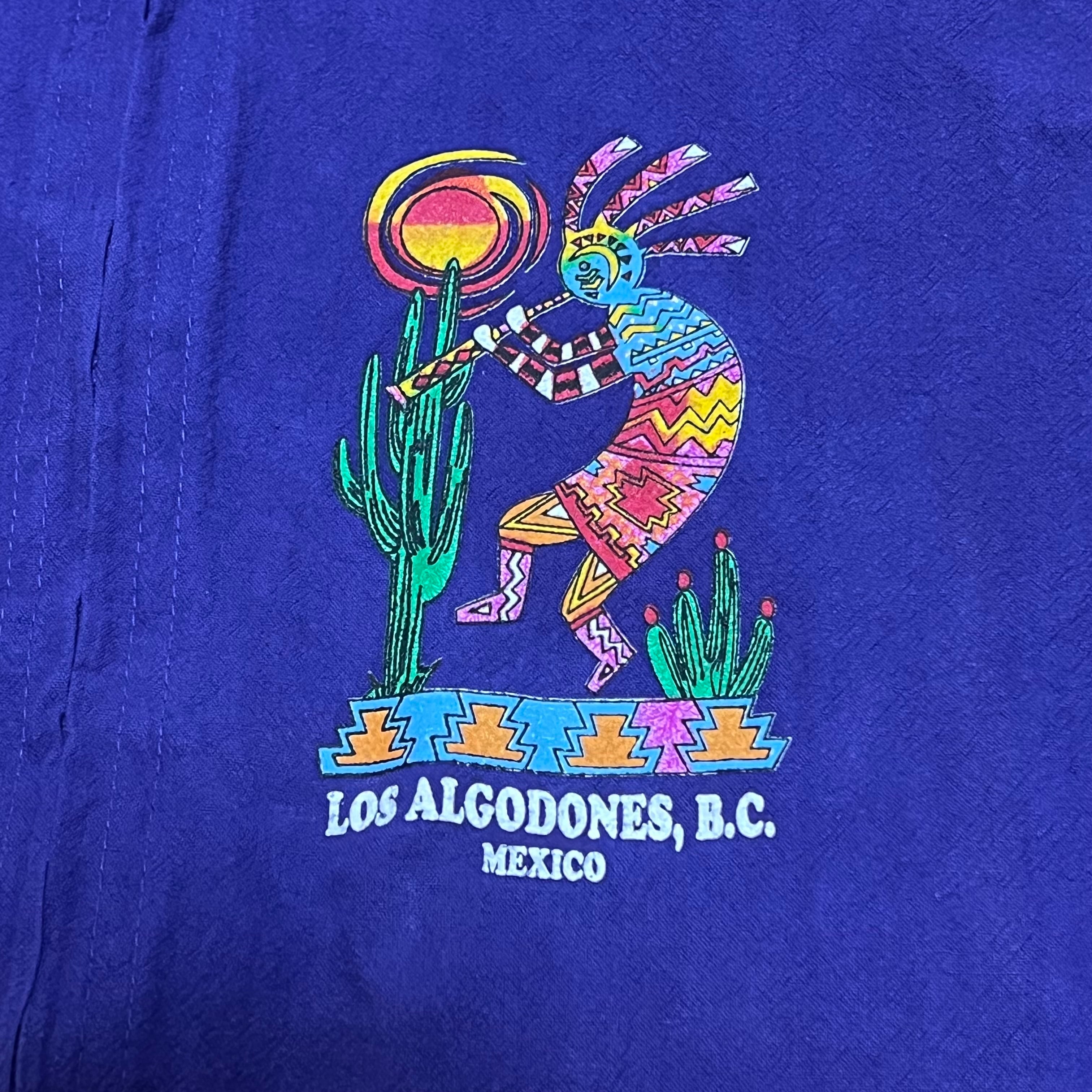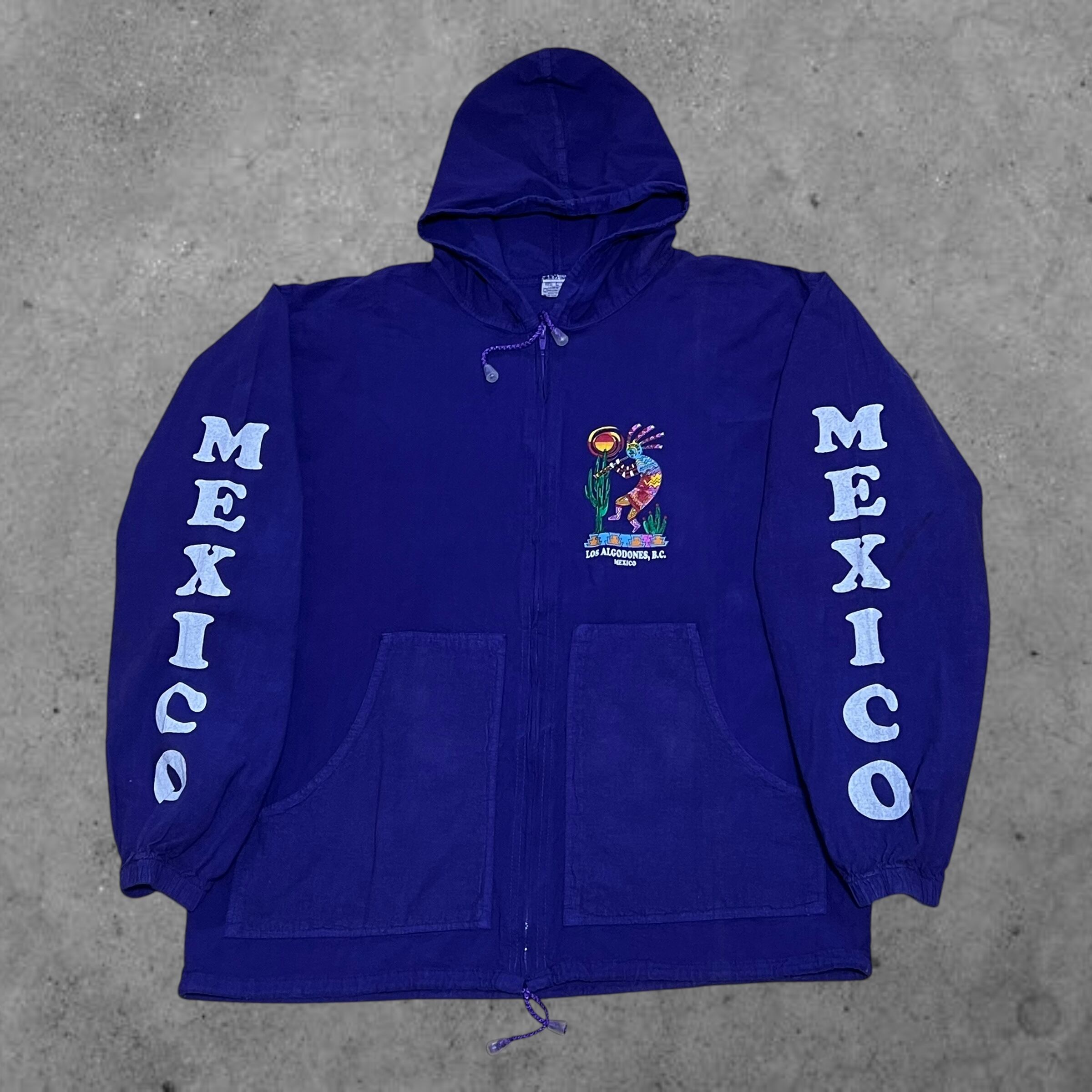 kokopelli(ココペリ)とは、南アメリカ地方に伝わるネイティブアメリカンの精霊のひとり。 「ココペリが笛を吹くと、地面から緑が吹き出し、花が咲き乱れ、木々は生い茂り、動物たちは次々と子どもを産み落とす。」 という言い伝えがあります。そんなメキシカンな精霊を贅沢にプリントしスリーブには無骨さ極まるMexicoプリントが施された貴重な一点です。近年流行りの短丈にも対応できる裾コード付きも魅力的です。アメカジ、スケーター、ストリートが好きな方には他の人と差がつけれるものとしてオススメです‼︎
